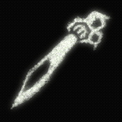 A gunblade lacking an open barrel rests on his back. Kept in impeccable condition despite the worn metal.